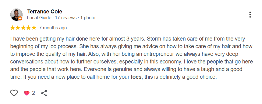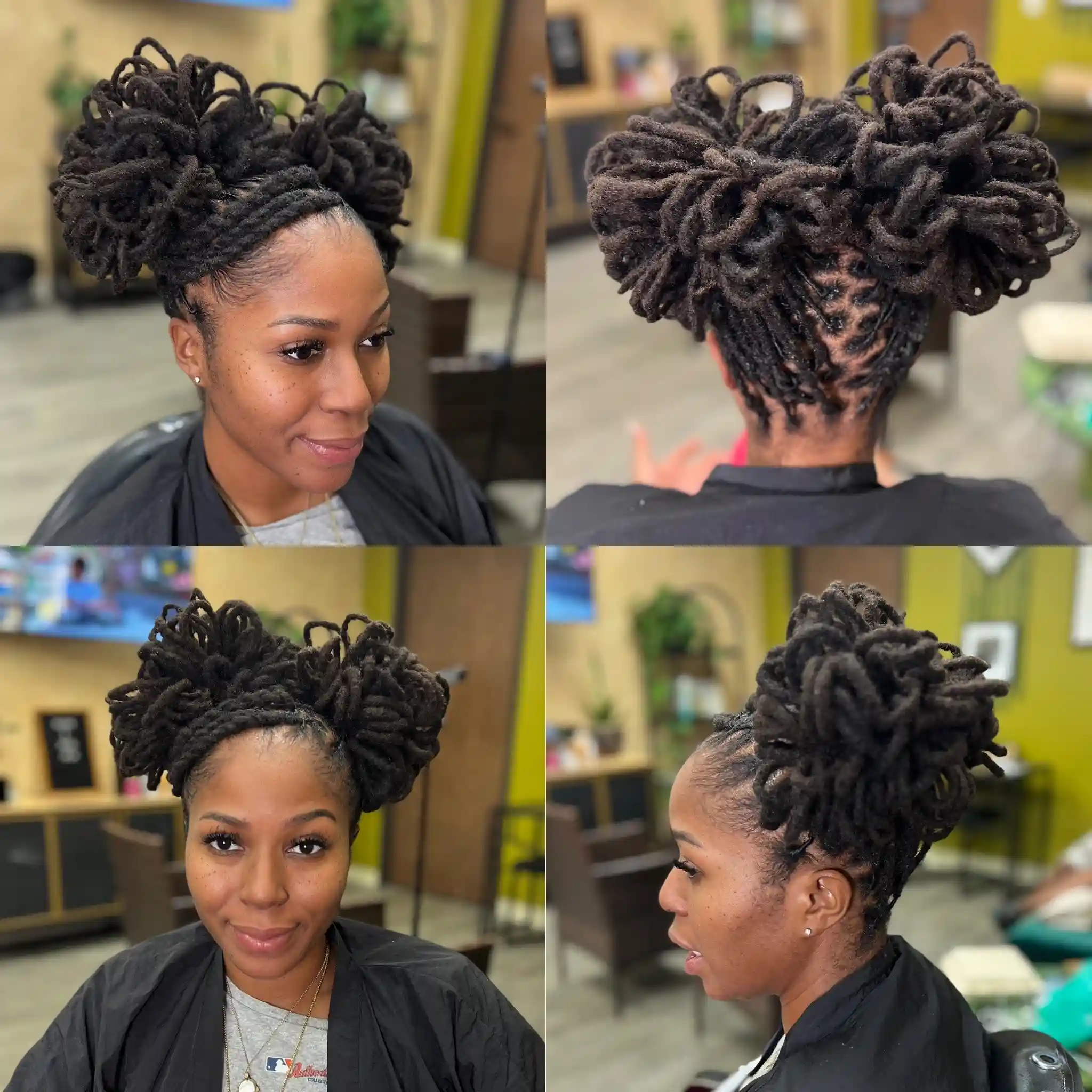 Every appointment includes a professional shampoo, scalp analysis, retwist, and advanced styling—like a loc bob, updo, or pipe cleaner style—using high-quality salon products (never beauty supply store brands).