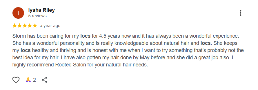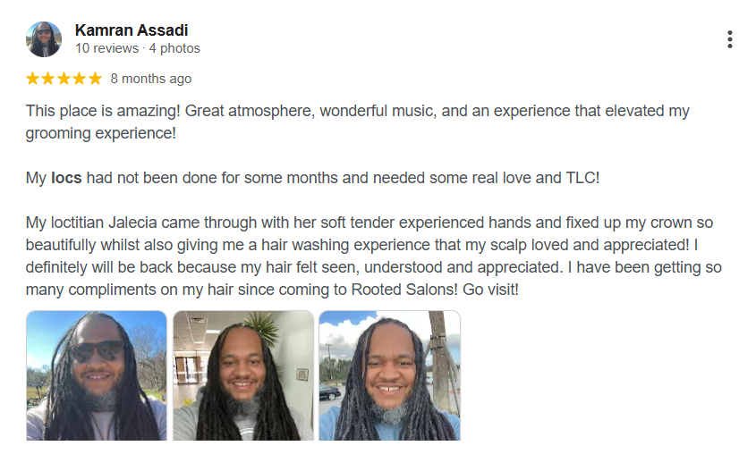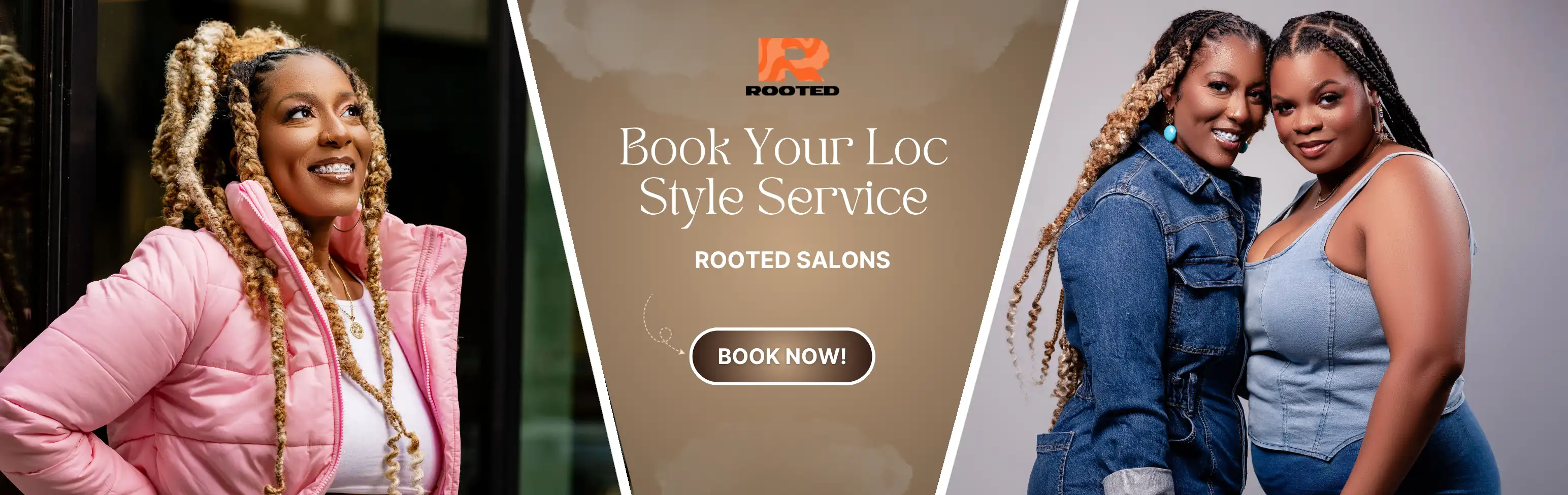 Step into Rooted Salons for a premium loc care experience—deep cleanse, expert retwist, and advanced styling designed for your crown. One chair, one client, 100% focus—luxury that feels personal.